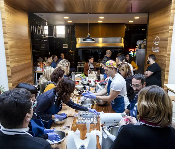 Try our innovative concept pairing language and cooking. It’s not only about learning new grammar, but using a language from the very first moment in classes led by a chef who knows all the secrets of traditional cooking as well as modern techniques. Working in a team enables you to communicate better and more quickly to improve your level and put your newly acquired language skills into practice. You will be amazed how quickly you can express yourself with confidence and ease. A different way of learning by using everyday vocabulary, in a new world of words and expressions that are a central part of our lives: cooking!